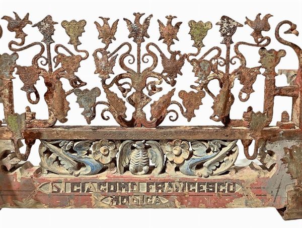 Fragment of Sicilian cart, Cascia di Fuso, author of Giacomo Francesco, Modica, Catania, Sicily., 20th century.