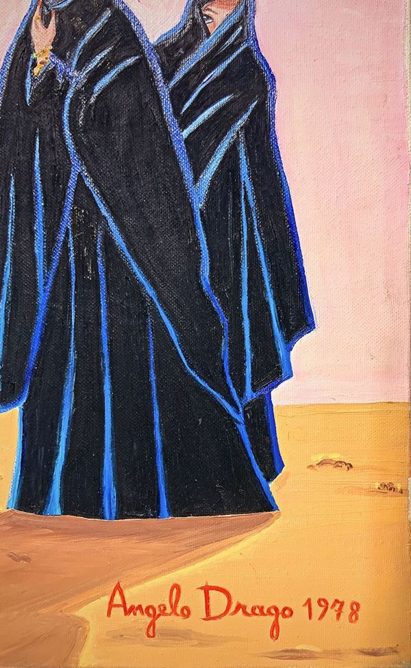 Angelo Drago wins the Golden Lion Award in Florence 1979, 1st International Occasion Art Award, Milan to the "Naif" friars. Bibliography: "The Italian naifs", Mario De Micheli, Renzo Margonari, Ed. Passera and Agosta Tota, preface by Cesare Zavattini pg 156. Bolaffi Catalog of the Italian Natifs, Giulio Bolaffi Editore 1973, pg 60.
