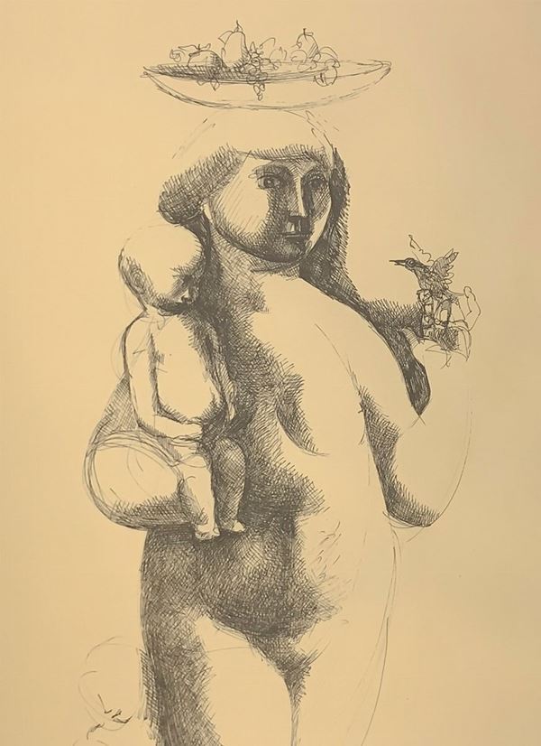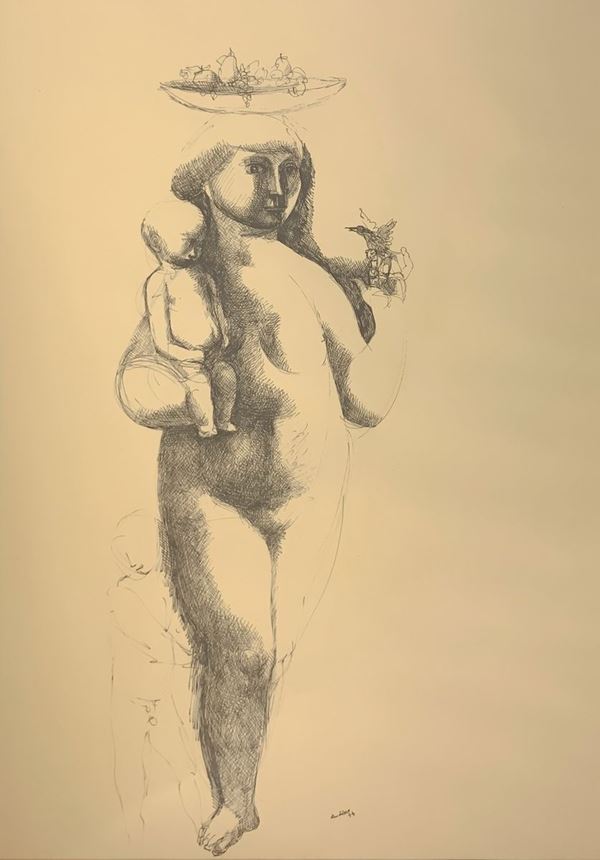 "Abbondanza", nudo di donna con bimbi, 1974
