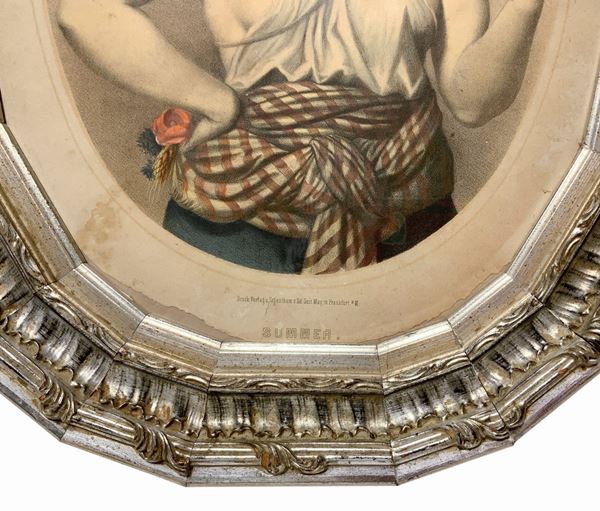 Ed. Gust. May Frankfurt (1850-1870). Cornice in foglia argento patinato con diciotto angoli ovalizzati
