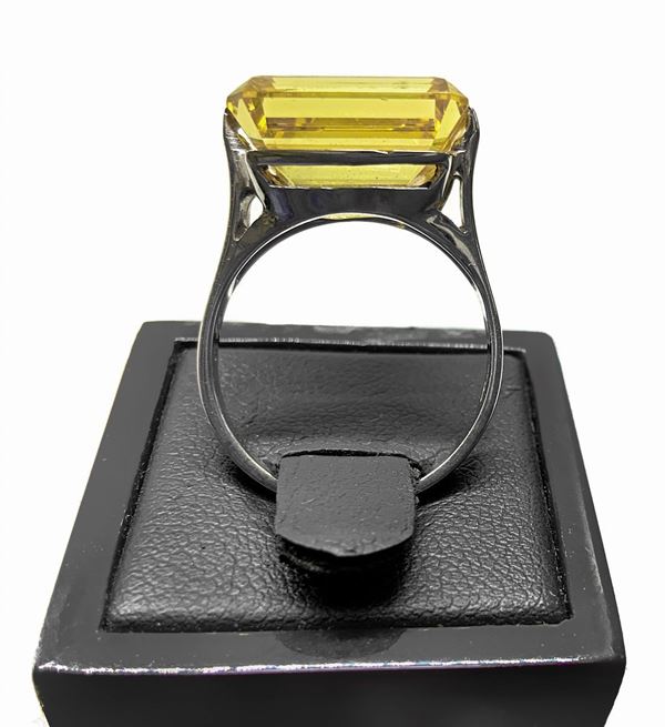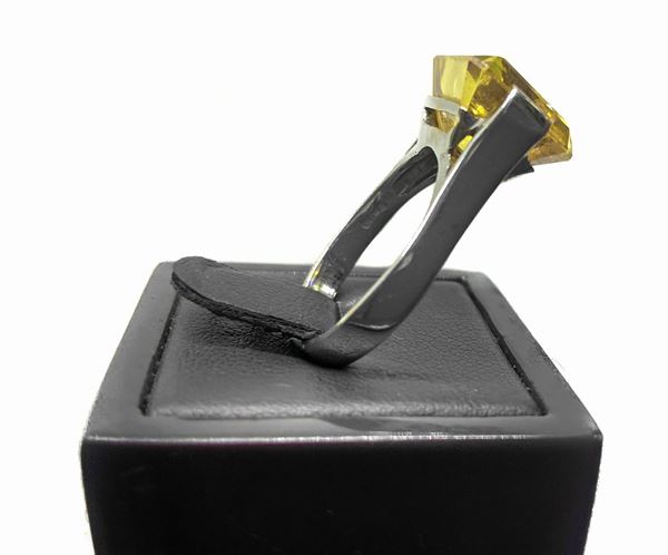 Lavorazione in oro bianco, topazio centrale rettangolare sfaccettato