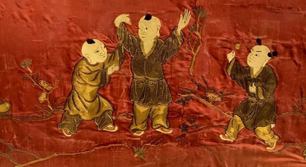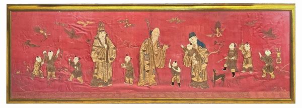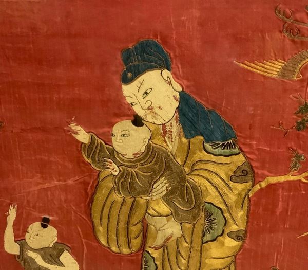 Arazzo in seta con personaggi, Cina, Fine XIX secolo, inizi XX secolo