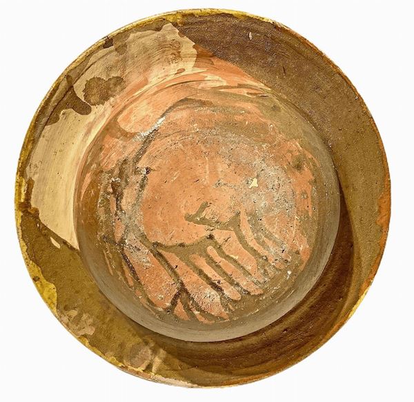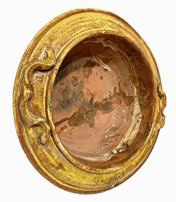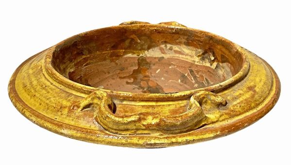 Braciere in maiolica di caltagirone nei toni del giallo.