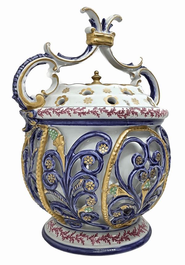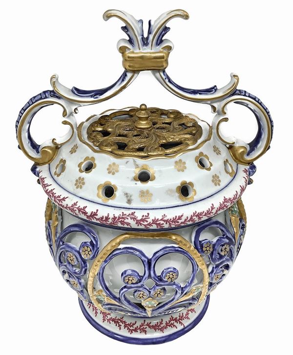 Brucia profumi in porcellana di Sevres.Coperchio in bronzo., XX secolo
