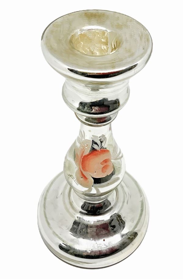 Candelabro in vetro di Murano argentato al mercurio., XIX secolo.