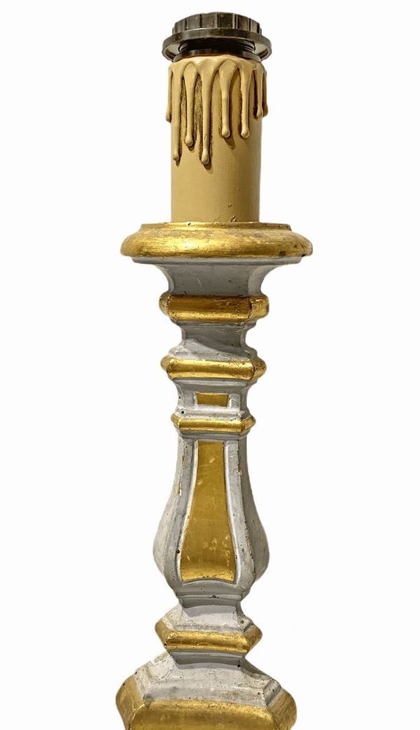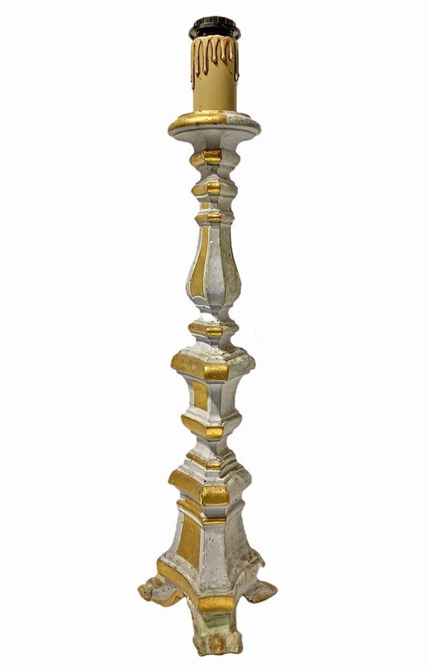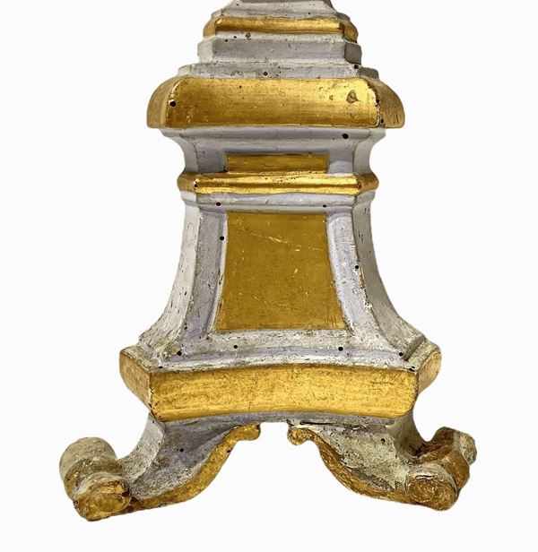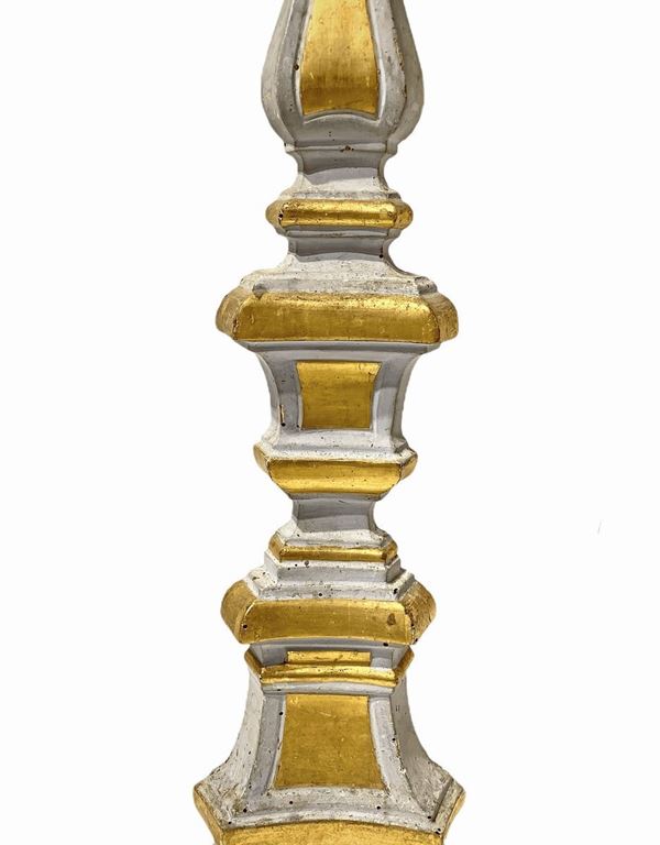 Candeliere in legno dorato e laccato., Fine XVIII secolo.