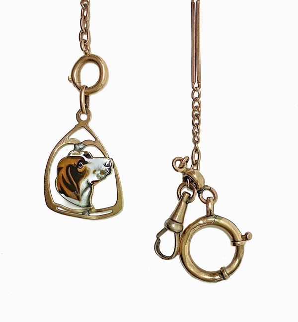 Bella catena con lavorazione in oro rosso con medaglia finale raffigurante volto di cane.