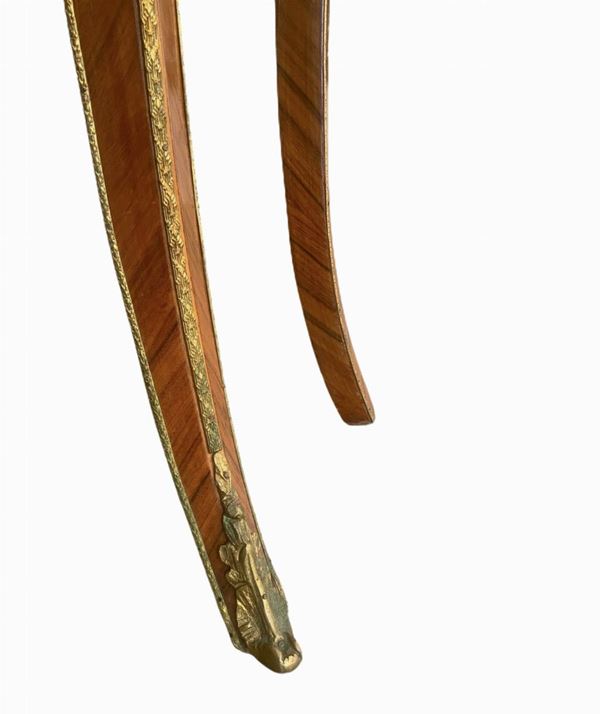 Piano in marmo verde. Da centro, rifinito su tutti e quattro i lati. Marmo al piano, cassetto superiore, sportello inferiore con mensola. Francia.