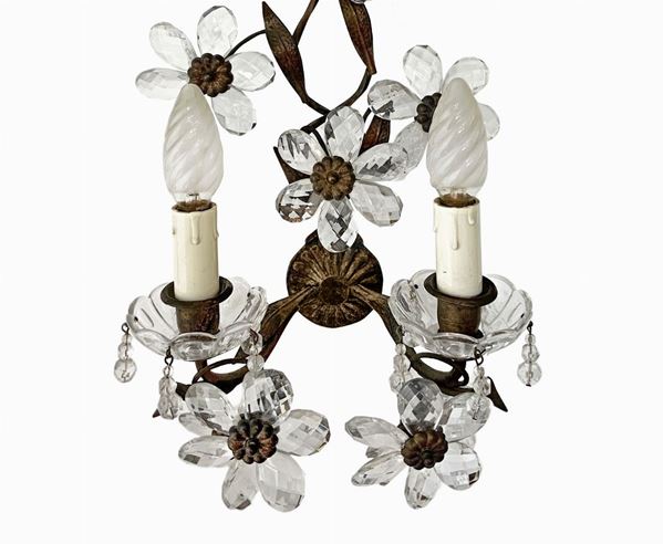 Coppia di applique in ottone dorato a due luci, XX secolo
