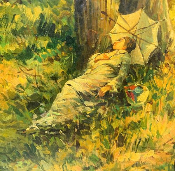 Donna sdraiata sotto un albero., XIX secolo