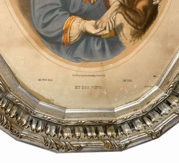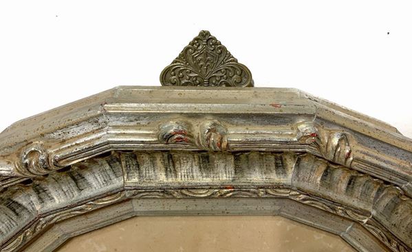 Ed. Gust. May Frankfurt (1850-1870). Cornice in foglia argento patinato con diciotto angoli ovalizzati