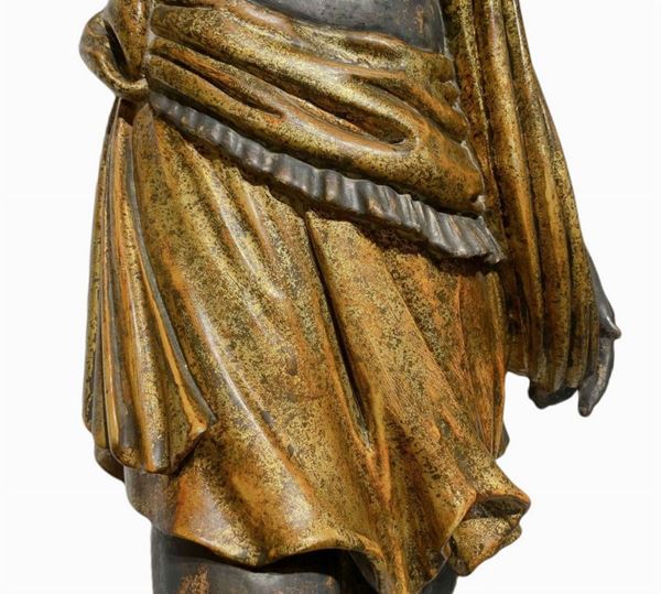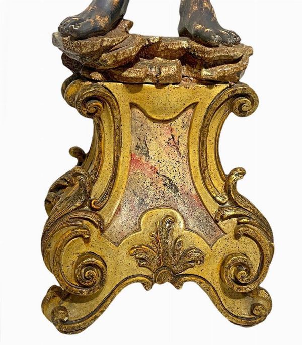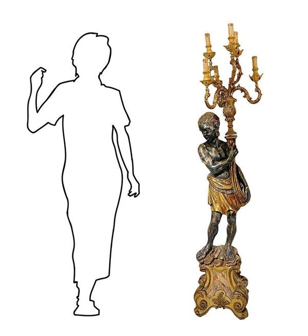 Grande candeliere da terra in legno raffigurante moro. Candeliere a 6 luci.