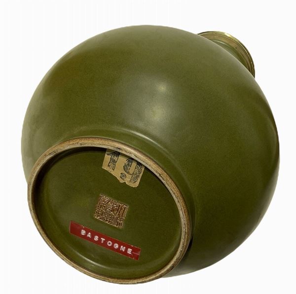 Colore verde petrolio, smalto in polvere di tè. Firmato da Qianlong.
