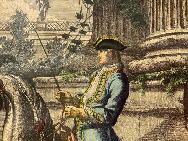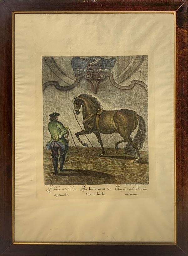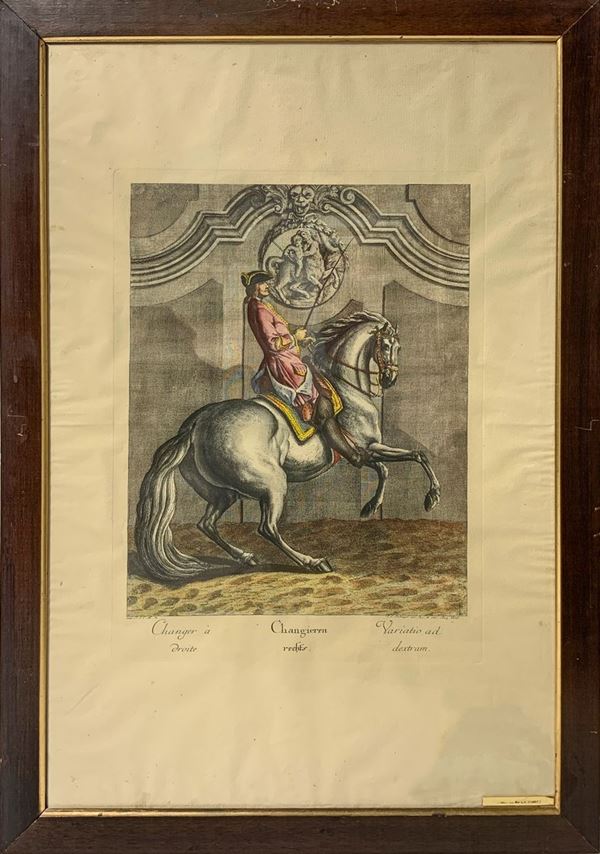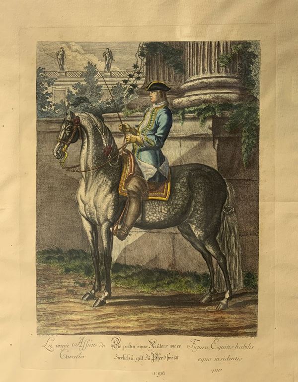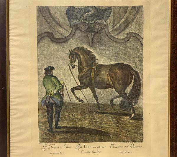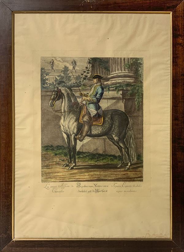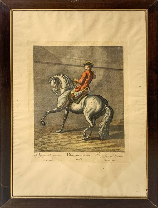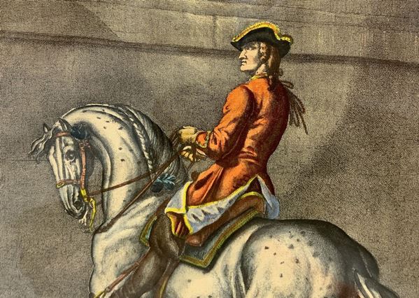 Gruppo di n.4 stampe raffiguranti figure equestri