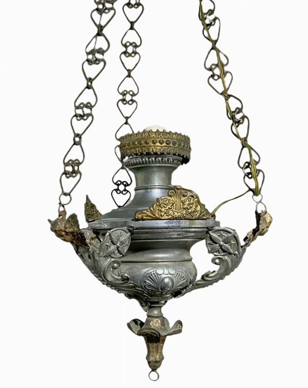 Lampada da chiesa in metallo argentato e dorato, fine XVIII., XVIII secolo