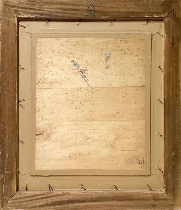 Firmato in basso a destra, sul retro timbro "La Barcaccia Roma"