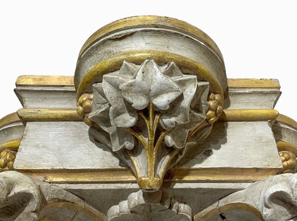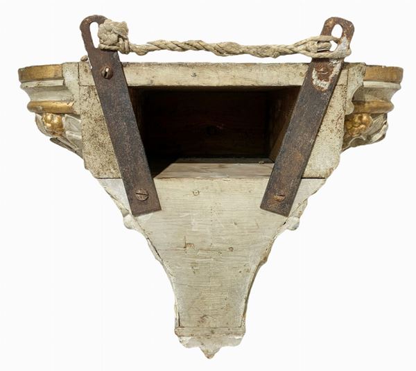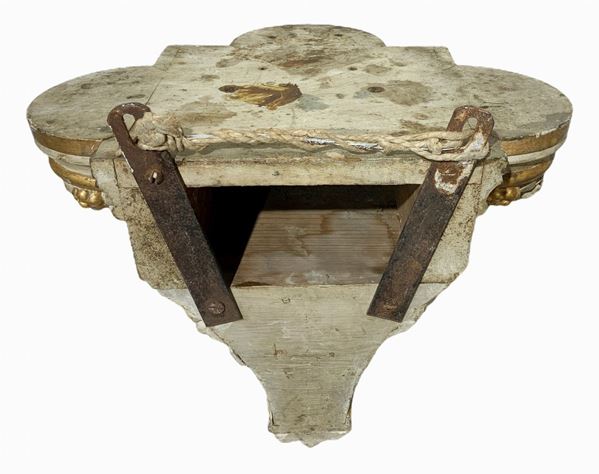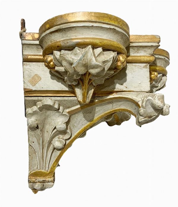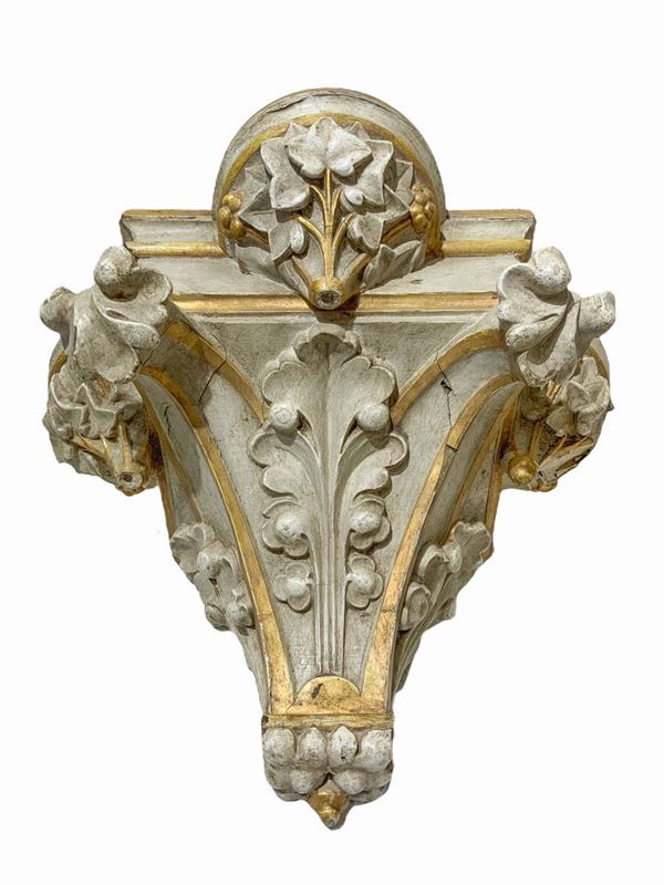 Mensola in legno laccata e dorata con foglie d’acanto e decori a foglie e fiori, fine XIX secolo., Fine XIX secolo