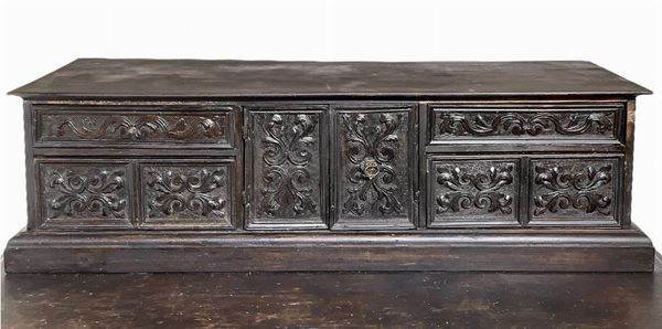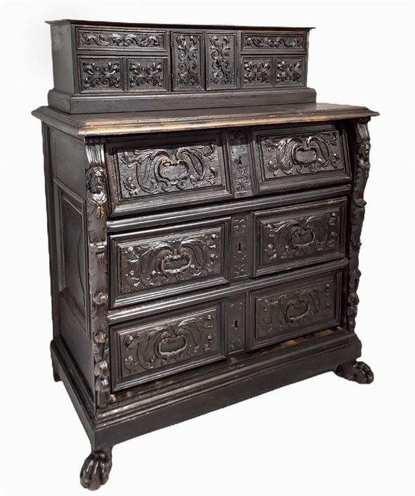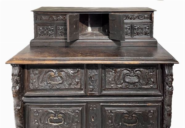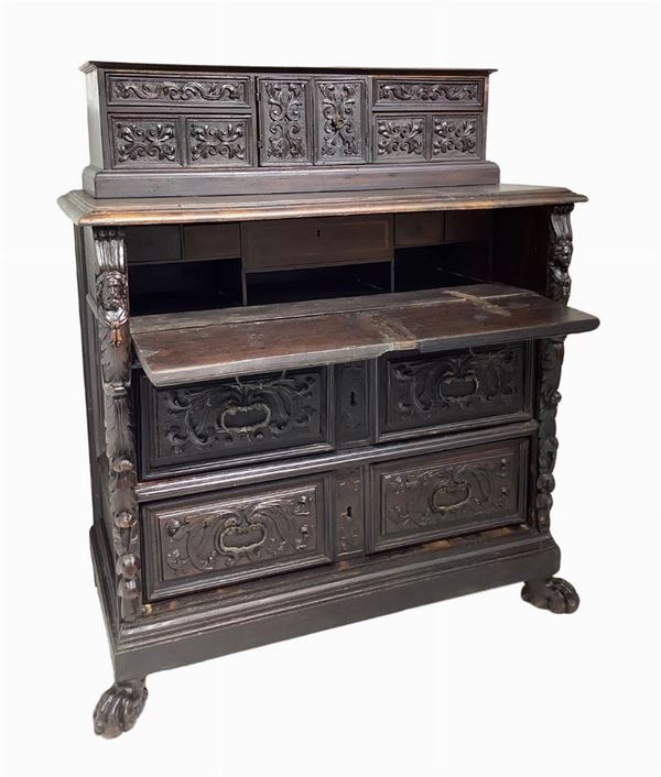 Mobile con alzata in legno di noce,, XVII secolo.