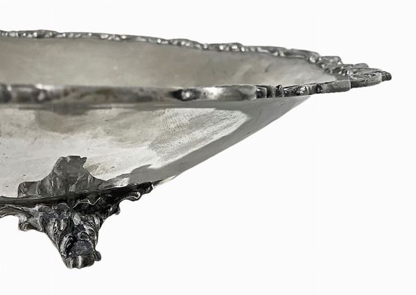Piccola alzata in argento con decorazioni di foglie sul bordo
