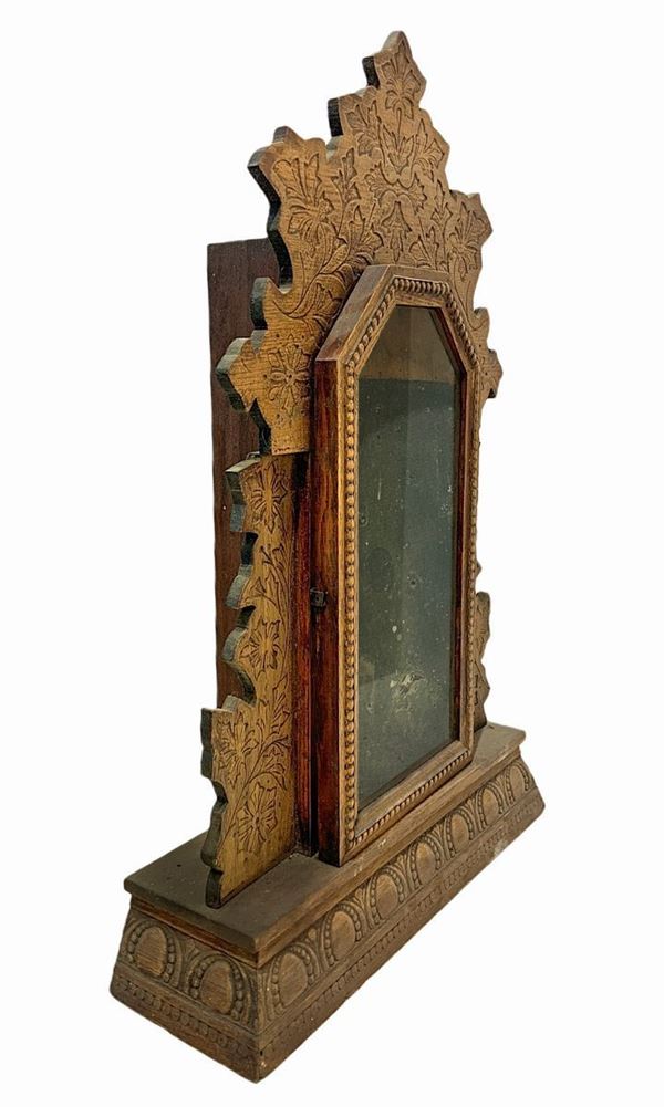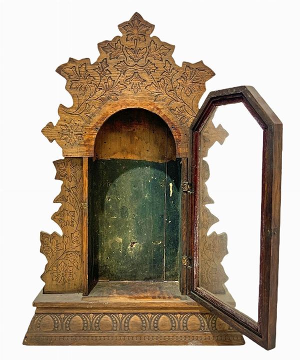Piccola edicola in legno bulinato a foglia d'oro. XIX secolo., XIX secolo