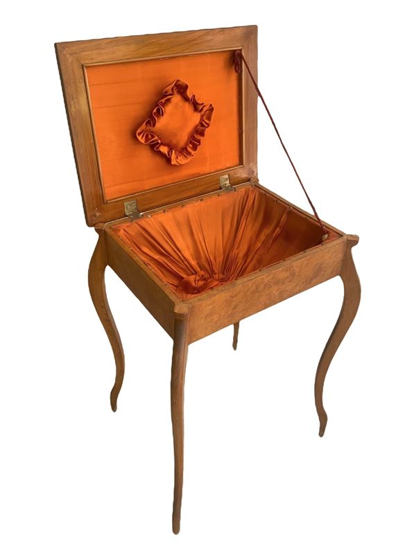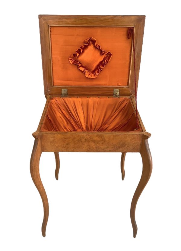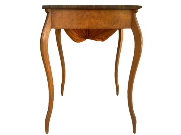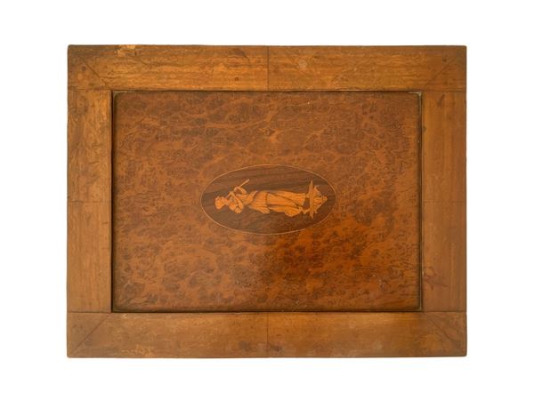Piccolo tavolo da lavoro rettangolare con intarsio neoclassico al piano, XIX secolo