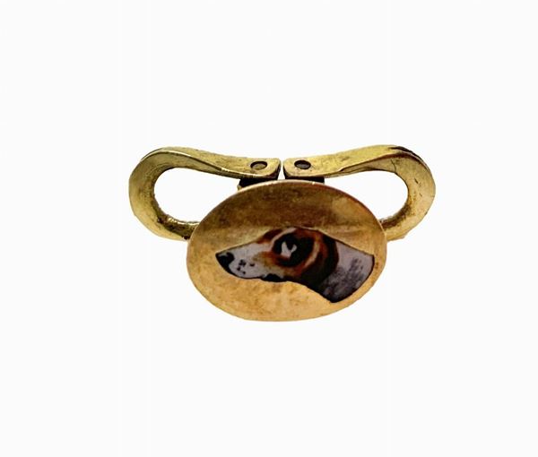 Piccoli polsini in oro giallo con disegno raffigurante testa di cane