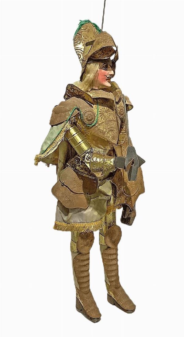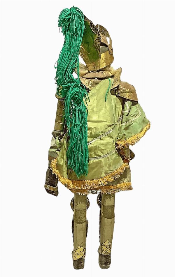 Con armature in metallo sbalzato e dorate e tessuto. Presenti segni d'uso