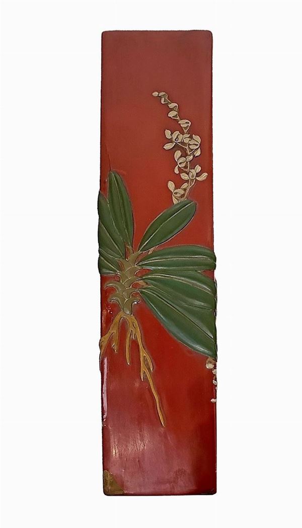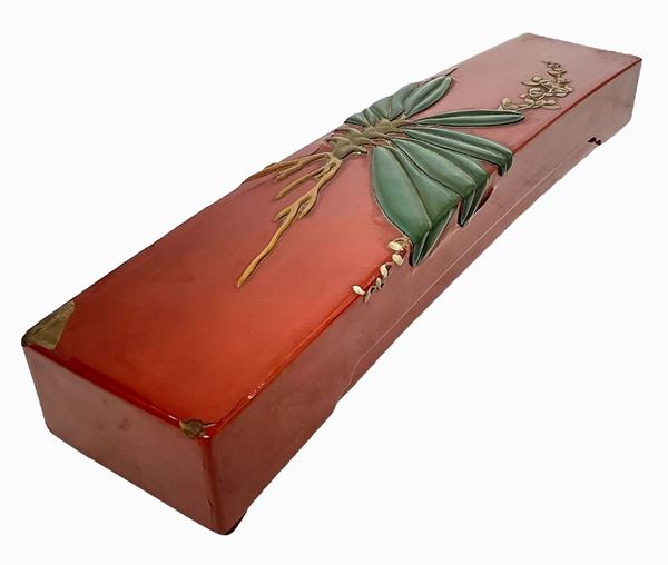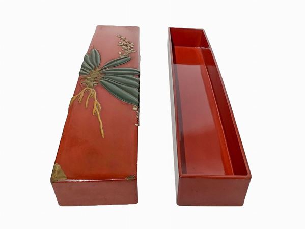 Scatola portaoggetti laccata nei toni dell'arancio., XX secolo