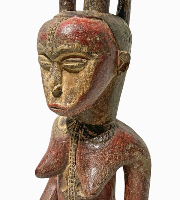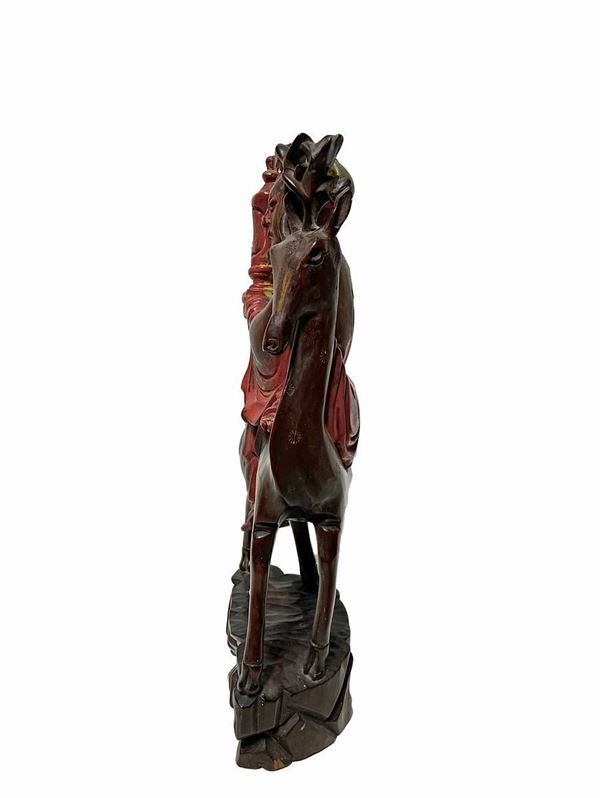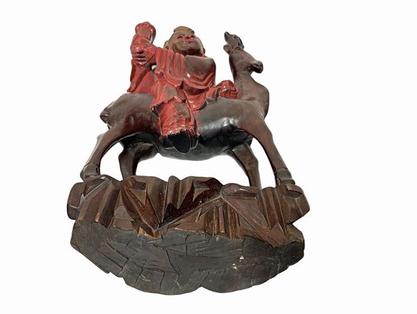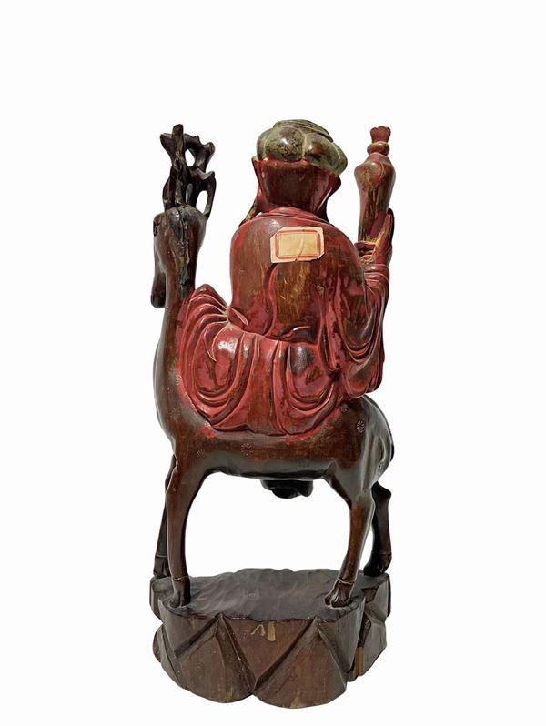 Scultura in legno laccato policromo raffigurante saggio cinese.