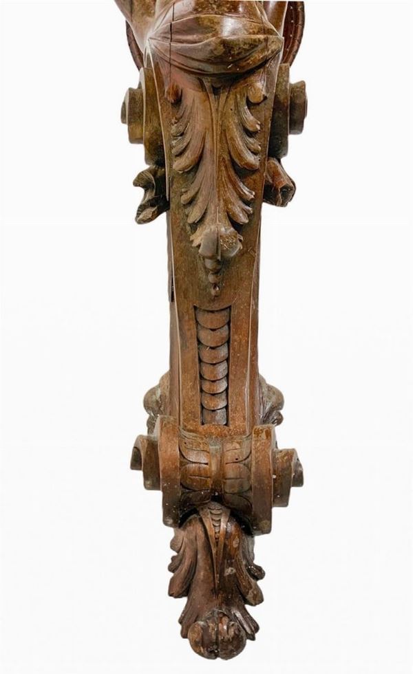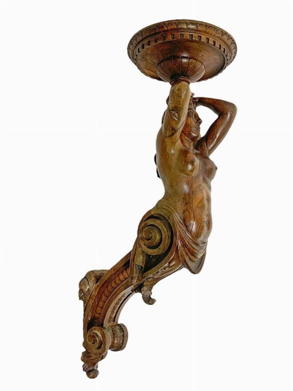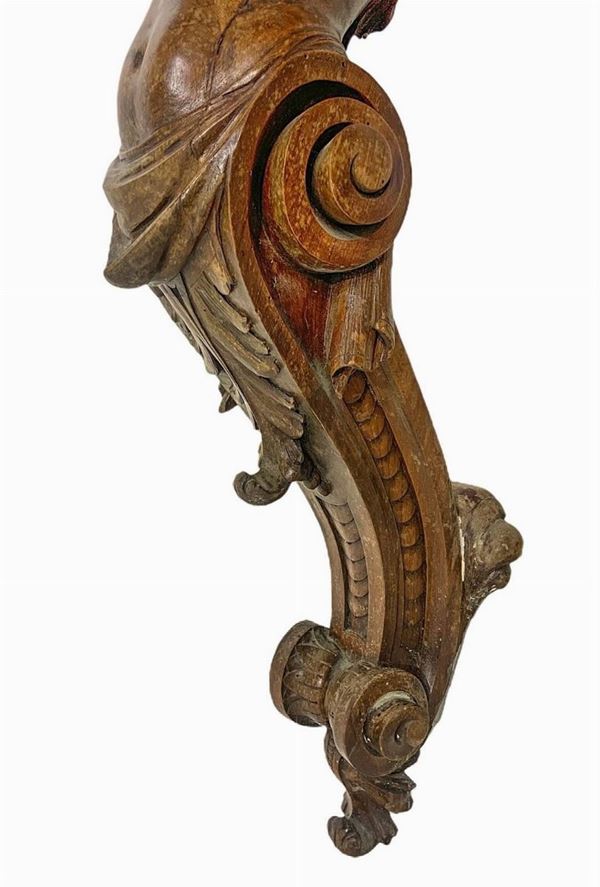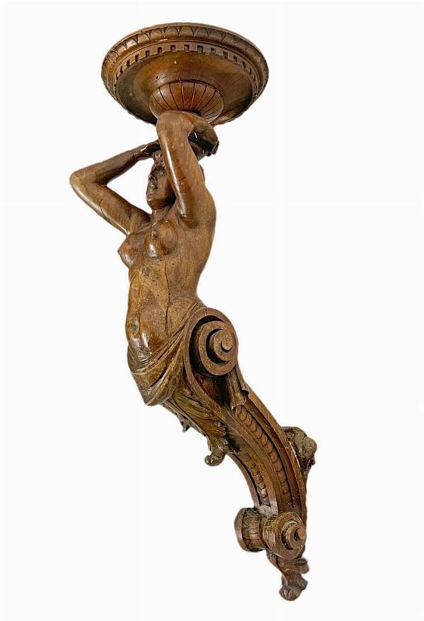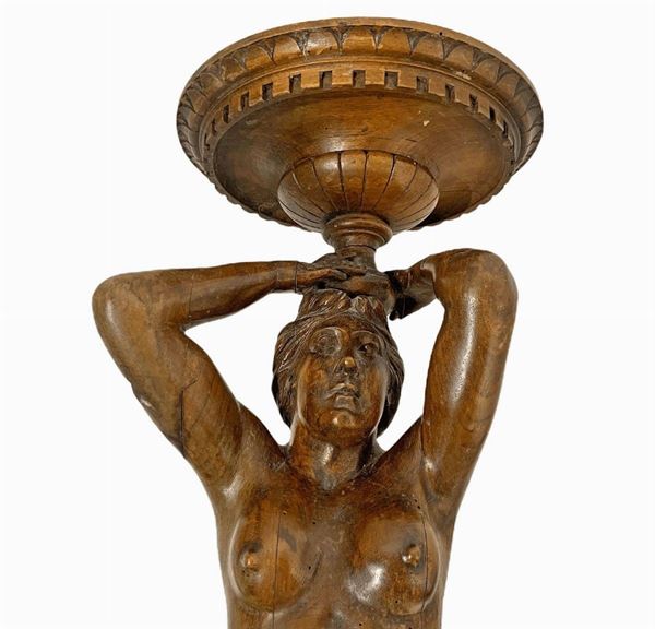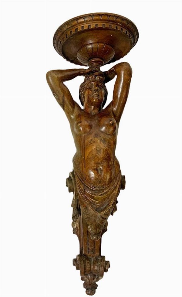 Sculture lignee raffiguranti cariatidi, donne a dorso nudo reggenti mensola, Fine XVIII secolo