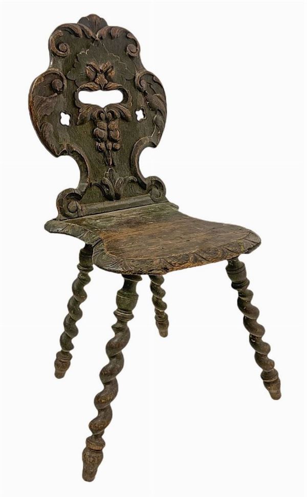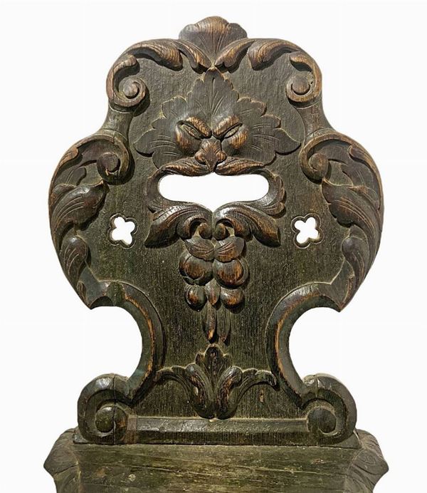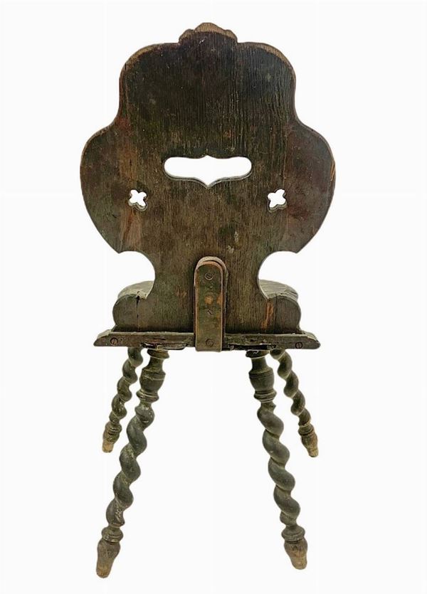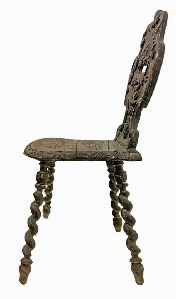 Sedia/sgabello ligneo intagliato, XIX secolo., XVIII secolo