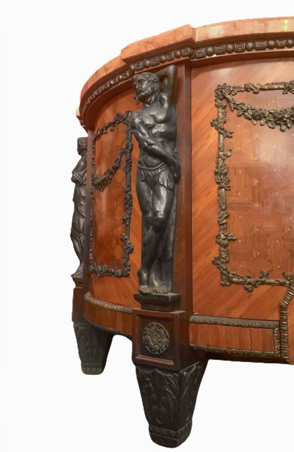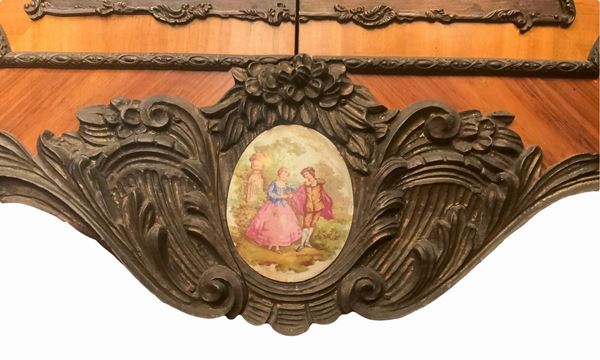 Servante con piano in marmo e dipinto con scene bucoliche e base ovale in porcellana con miniature, XX secolo
