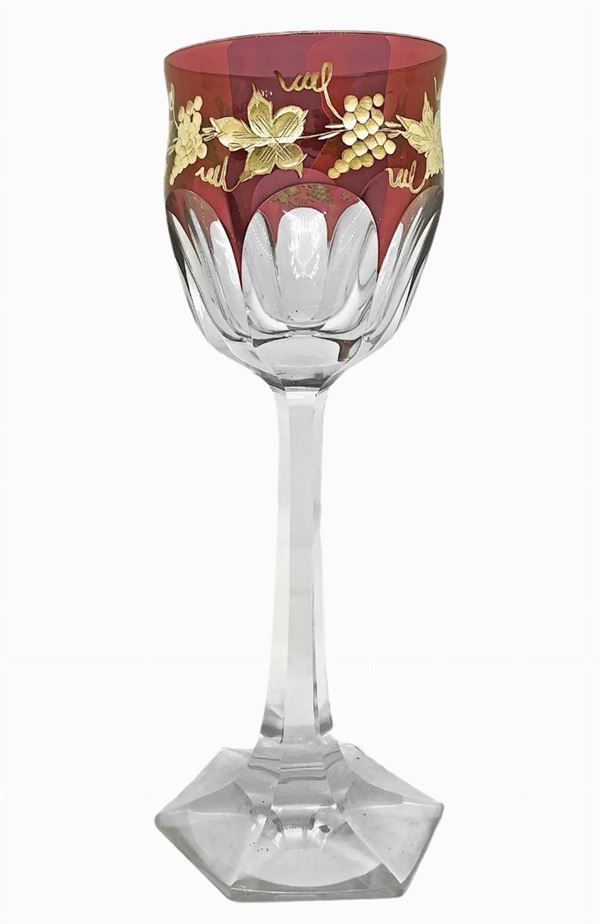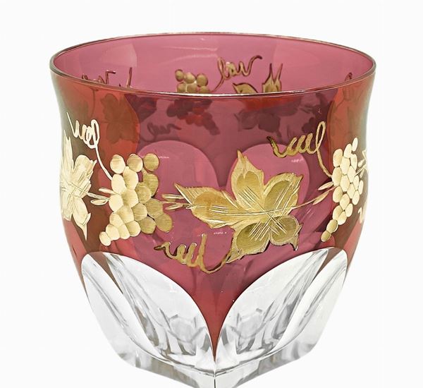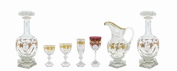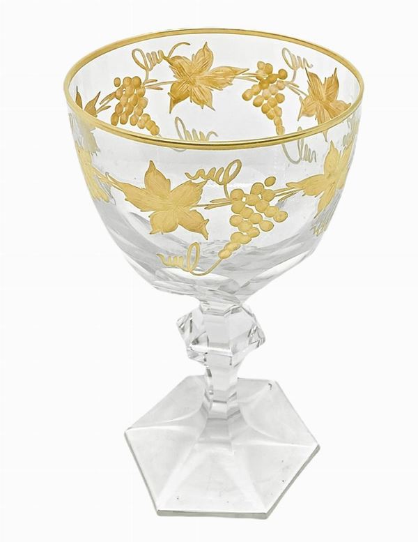 Servizio di bicchieri con perfilo dorato decorati con foglie e uva