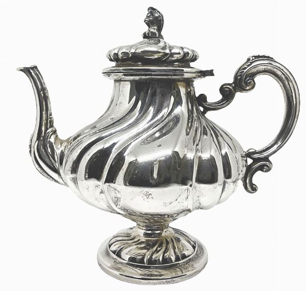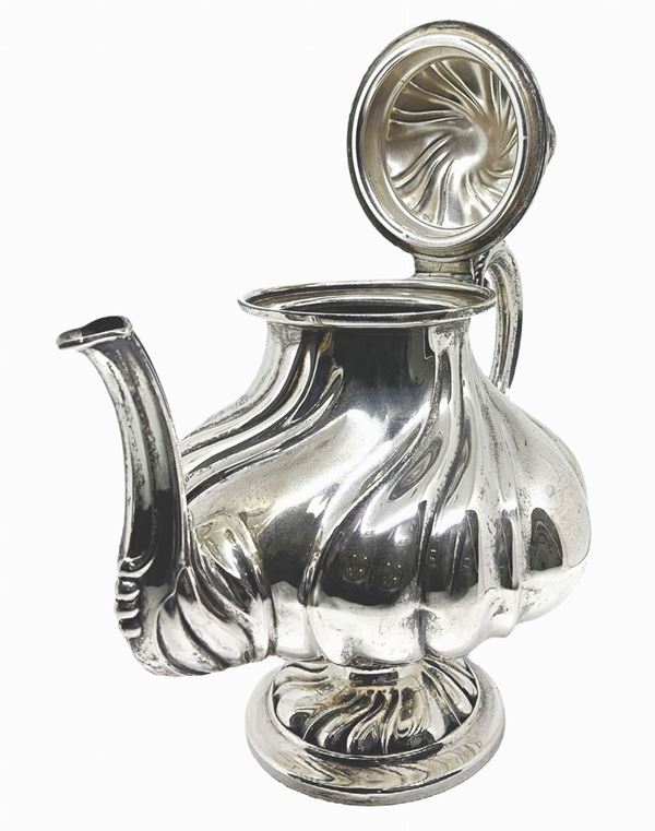 Servizio in argento, composto da teiera, caffettiera, lattiera, zuccheriera.