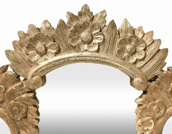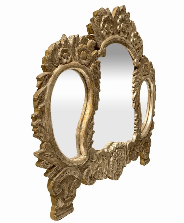 Specchiera a trittico in legno argentato a foglia., Fine XVIII secolo.