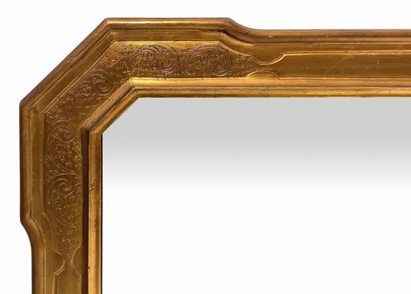Specchiera dorata in legno dorato di forma rettangolare, XX secolo