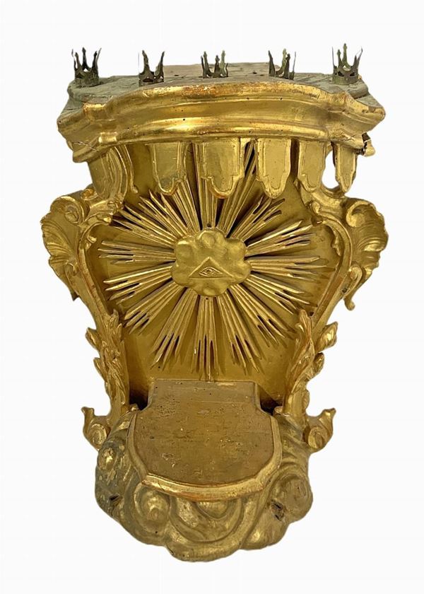 Tabernacolo reggicandele in legno dorato a foglia, XVIII secolo
