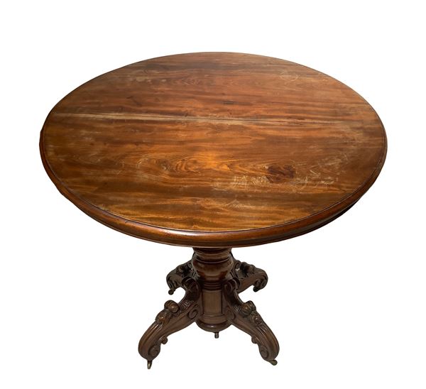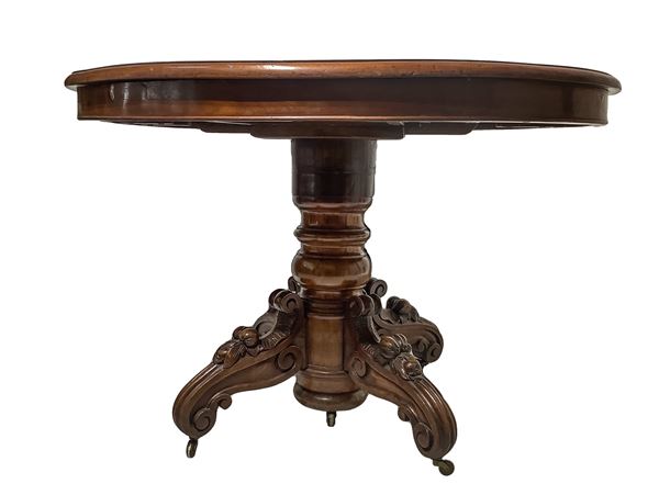 Tavolo ovale allungabile in legno di mogano, piede a quattro razze, Fine XIX secolo