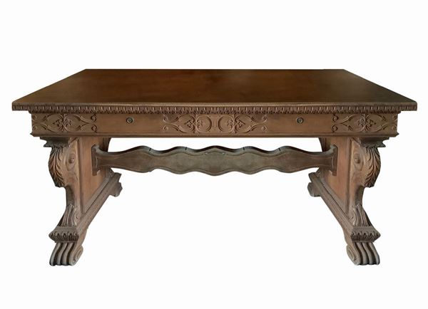tavolo/scrivania neorinascimentale con poltrona, XX secolo