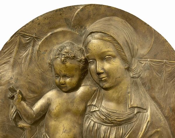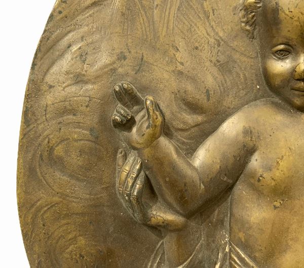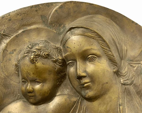 Tondo in bronzo raffigurante Madonna con bambino, fine XIX secolo., XIX secolo
