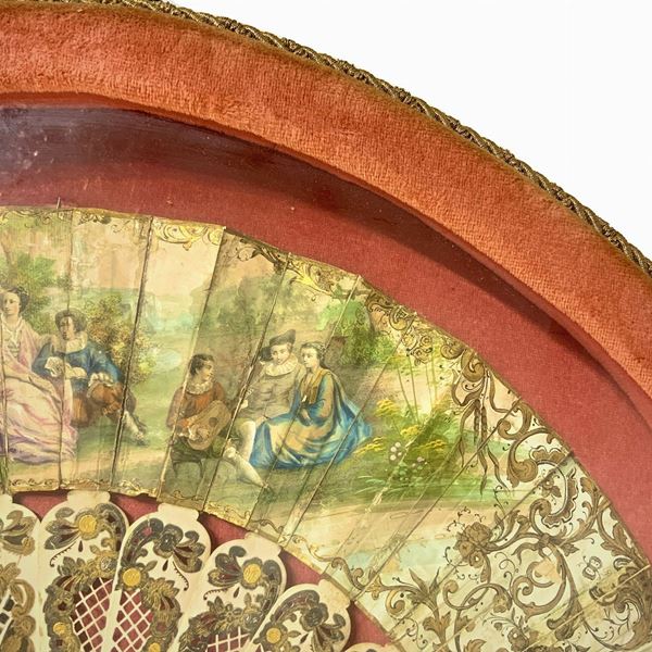 Ventaglio dipinto a mano con scene di genere la compagnia dell’arte