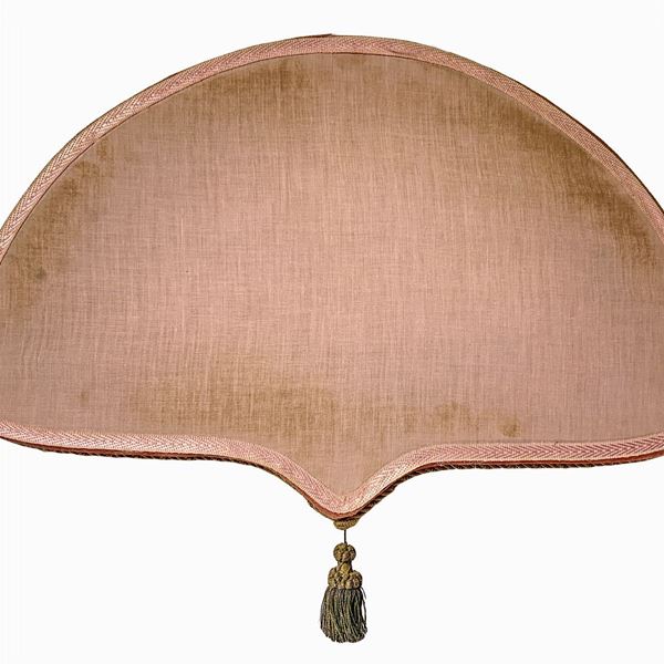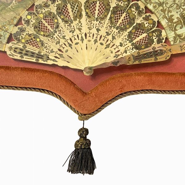 Stecche in osso traforato e decorazioni in oro, in ventagliera di velluto color salmone