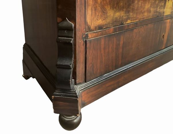 Chiffonier in legno di palissandro, corpo inferiore composto da cinque cassetti, Metà XIX secolo
