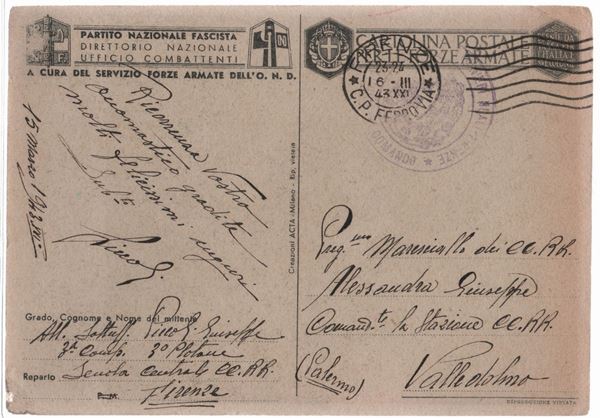 La Casa d'Aste Art La Rosa offre in vendita cartoline delle dittature della II Guerra Mondiale solo ai fini dell'educazione civica e della difesa contro atti incostituzionali o anti costituzionali, della ricerca storica, scientifica e storico militare. L'offerente si impegna ad acquistare tali opere per motivi storico scientifici e per quelli sopra citati e non per scopi propagandistici.