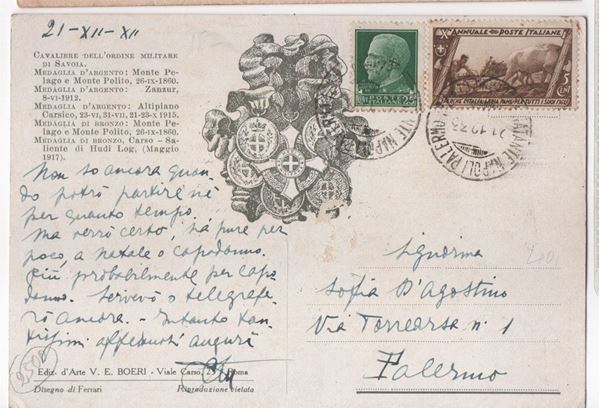 Viaggiata 21.12.1933. Illustratore: Ferrari Giulio (1900-1990). Edizione d'arte V.E.Boeri- Roma. Ottimo stato.