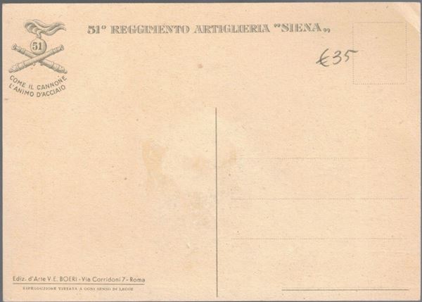 Cartolina originale 51° reggimento artiglieria "Siena" 1940 c.a. "Come il cannone l'animo d'acciaio"