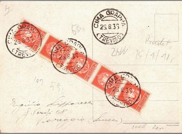 La Casa d'Aste Art La Rosa offre in vendita cartoline delle dittature della II Guerra Mondiale solo ai fini dell'educazione civica e della difesa contro atti incostituzionali o anti costituzionali, della ricerca storica, scientifica e storico militare. L'offerente si impegna ad acquistare tali opere per motivi storico scientifici e per quelli sopra citati e non per scopi propagandistici.