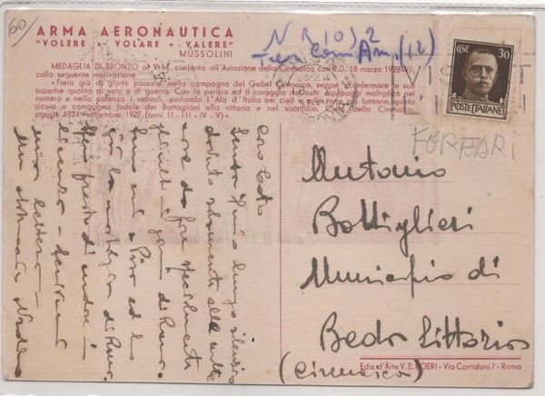 Cartolina originale coloniale- arma aeronautica Volere - Volare - Valere