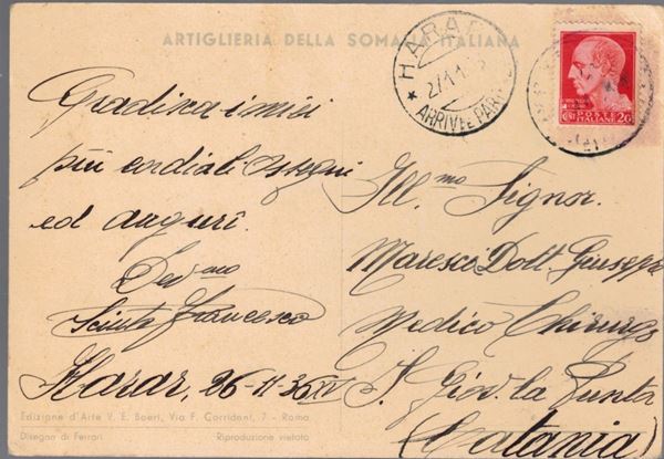 Cartolina originale coloniale artiglieria della Somalia Italiana