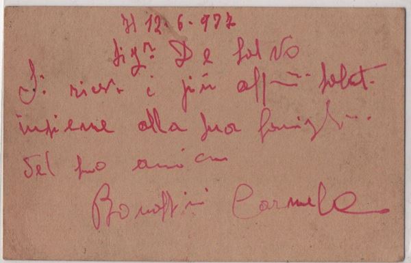 Cartoncino seppiato. Viaggiata 12.06.1937.
